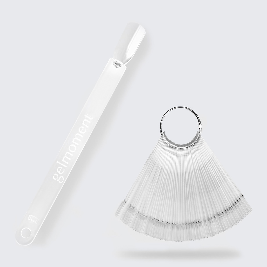 Includes 50 blank nail sticks with 1 metal ring, now with gelmoment label.